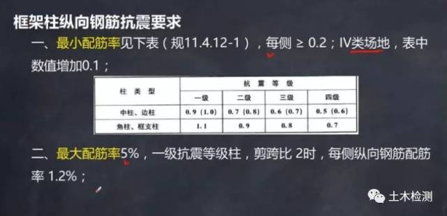 A. 纵筋配筋率: 最小配筋率按《混凝土规范》表11.3.6-1中数值取用,一般模型计算会考虑,不用管;最大配筋率不宜大于2.5%;