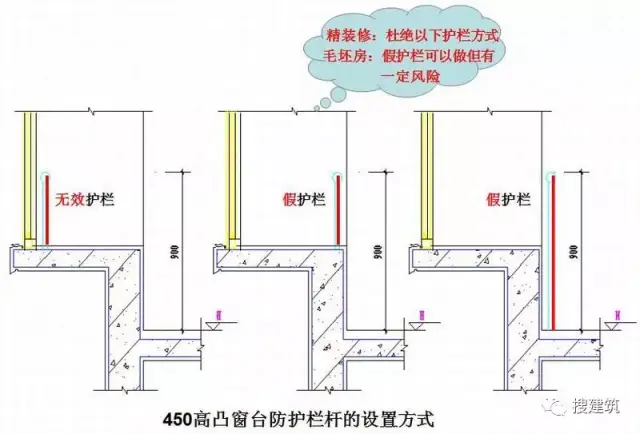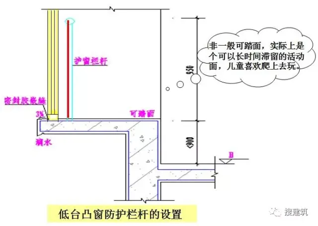 看450高凸窗台如何设置防护栏杆? 结论还是按此贴窗设置防护栏杆为好