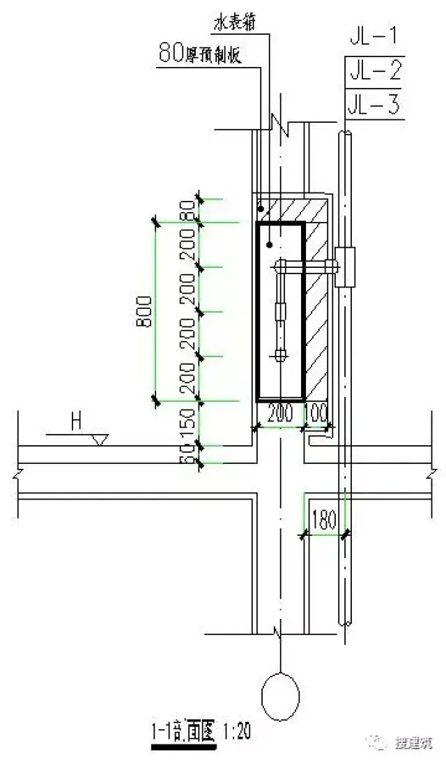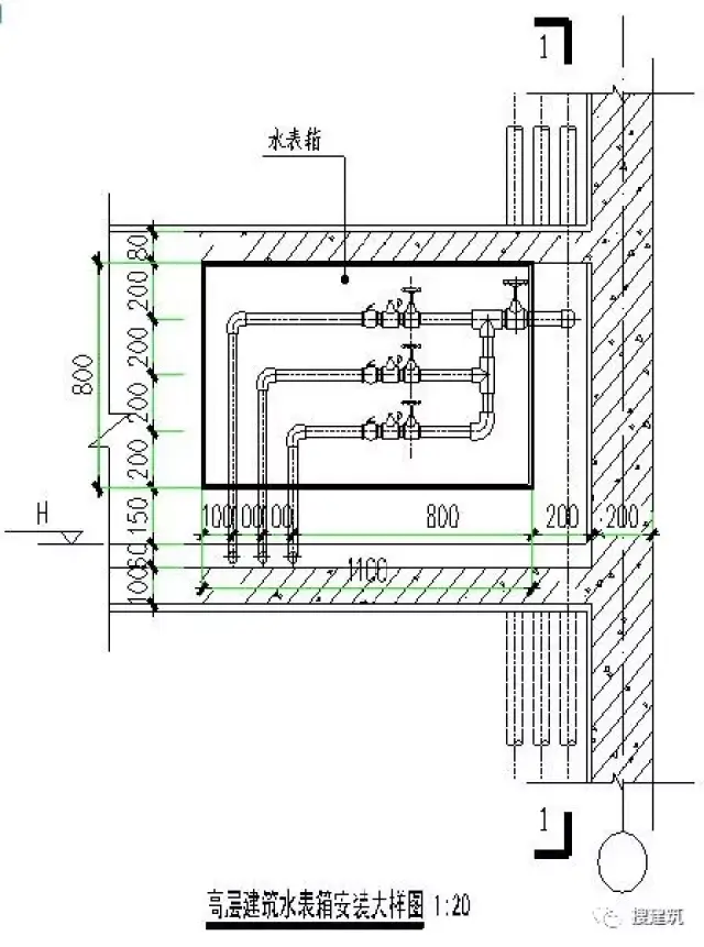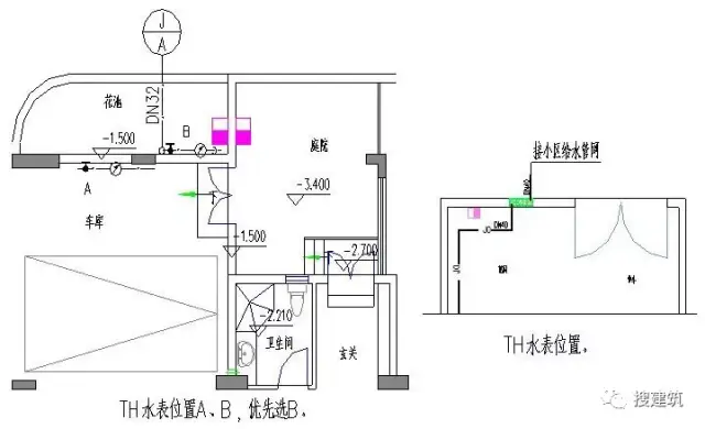 ● TH、多层住宅水表应在底层合适的位置集中设置;高层住宅每层的分户水表应在每层的水管井中集中设置,如无法设置管井,则应设置水表箱,水表箱应暗装。