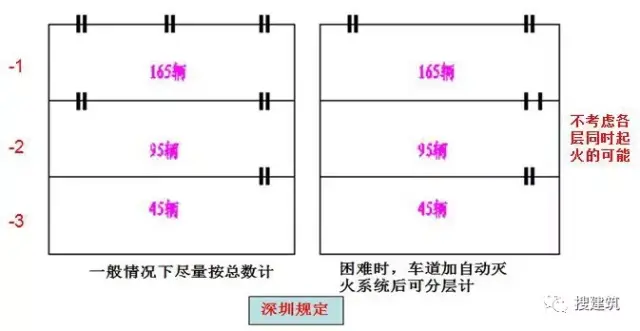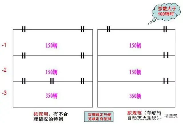 ● 地下汽车库停车数超过300辆时,深圳市项目应设三个坡道出口,其它可按国家及当地要求执行。