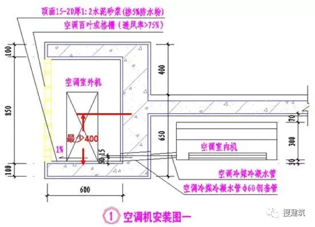 ● 空调预留洞应靠近室内机位,室内外不允许暴露较长段空调管。