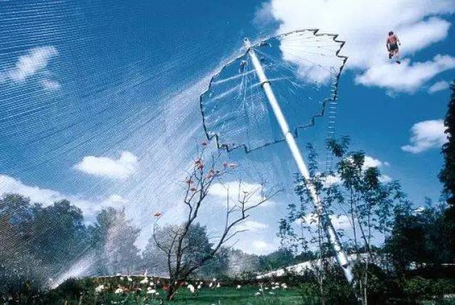近年出现的ETFE膜则带来了更多的可能性。还存在一类特例,比如由弗莱·奥托与哈珀德公司(BuroHappold Engineering)合作设计的慕尼黑动物园大型鸟舍(Aviaryat Hellabrunn Zoo,1982)。由于建筑师的方案构想是“一个像云朵似的建筑物”,因此在能承受雪荷载的同时,其内部的结构障碍物应尽可能地少,并且外围结构要允许小鸟和风自由穿过。建筑师与结构工程师不断交流和沟通彼此的想法并同步进行优化,采用了与该动物园别处某些兽笼相同的波纹不锈钢网,建成了一个能同时满足建筑和结构强制要求条件的网状结构(图52)。