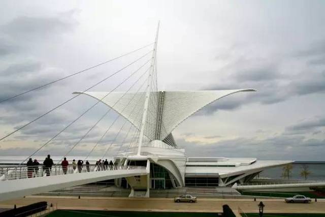 西班牙建筑工程师圣地亚哥·卡拉特拉瓦(Santiago Calatrava)以一种“能动的建筑”(kineticarchitecture)改变了人们对建筑的意象,他赞赏运动,认为运动就是美。他从身体的特技动作与舞蹈者克服重力的姿势中获得了丰富的灵感,捕捉形变,并将之归入到一个流动的世界中去,但他又能以出色的智慧将这种运动的形态与逻辑的建构方式融合起来,创造出诗意的建筑。运动,无论是直白的还是暗示的,都重新定义、重新构筑和重新激活了结构形态,最后形成永久伫立的结构构件和建筑形制的典范。这种力与运动的对比体现在他设计的一系列桥梁,以及旋转大厦(Turning Torso,2005)(图15)和高速铁路车站(Medio Padana TAV Station,2013)等一系列建筑中。在代表作品密尔沃基艺术博物馆新馆(Quadracci Pavilionof Milwaukee Art Museum,2001)(图16),顶部是一对仿佛能使建筑腾空而起的巨大白色遮光翼,它们会随着光线的变化而开合。