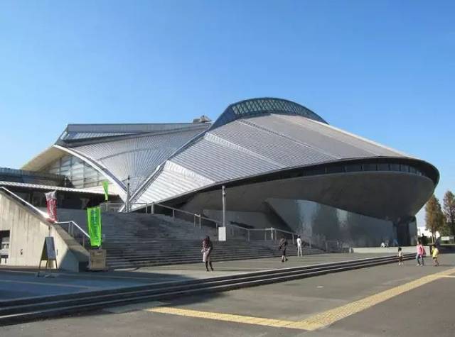 槇文彦(Fumihiko Maki)与结构工程师木村俊彦(Toshihiko Kimura)设计的藤沢市秋葉台文化体育館(AkibadaiCulture and Gymnastic Hall,1984),主厅的屋盖支承在两道平行的巨型钢桁架拱上,屋面覆盖着不锈钢薄板,其形式显然并非源自最简单高效的原则,但却极佳地将建筑与结构融为一体,传递了一个强烈的象征意义,让人想起古代日本武士的头盔(图31)。