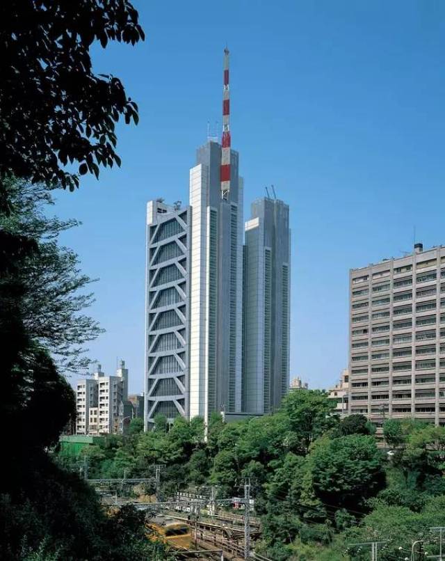 即使是以表现高技术与新理念为重的高技派建筑师们也并未忽略对历史的尊重。诺曼·福斯特就擅长将看似对立的传统与现代结合起来形成互补的状态。东京世纪大厦(Century Tower,1991)是其事务所设计的第一栋地震区的建筑物。对于抗震建筑物来讲,最常用的结构形式是门式框架,因为这样可以使梁(而不是柱子)超限变形而形成塑性铰,从而消耗地震能量,避免建筑物倒塌。而如果想获得开敞的楼面布置和大面积窗口,就需要更加粗大的梁和柱,这将是既不经济又非常难看的。鉴于此,进行结构设计的Arup的工程师们构思了新颖的结构减震体系——选用一种跨越两层层高和整个建筑物宽度的巨型箱型截面偏心支撑框架(EBFs)。框架的大小与形状主要取决于延性连梁的长度:短的连梁易遭受剪切破坏;而长的连梁却易遭受弯曲破坏,最后选择了9m的最适宜的连梁长度。这个结构尺度也符合建筑师们对外立面的构想——它暗示着日本书法毛笔字的一笔一划(图33)。