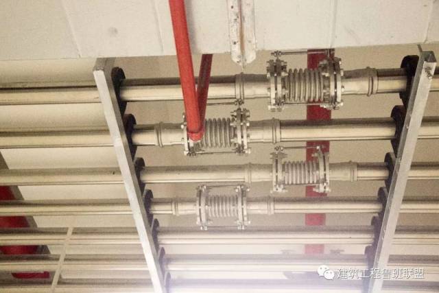 热水管道按规范设置补偿器,补偿器成排成线。