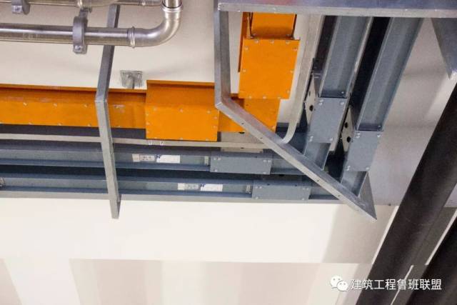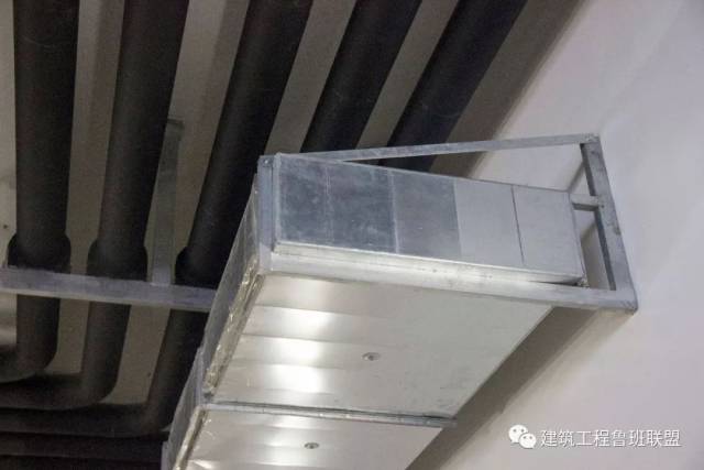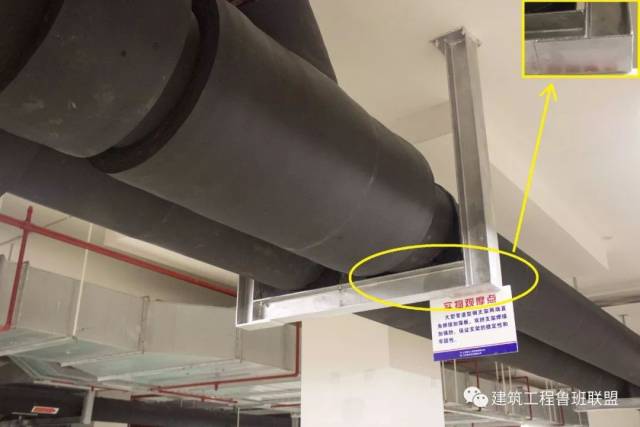 管道下方风管(距顶距离较大)采用侧向支架,既可有效节约成本;又可确保风管安装质量。