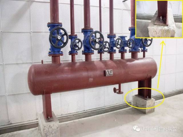 机房管道承重支架下方加固处理。
