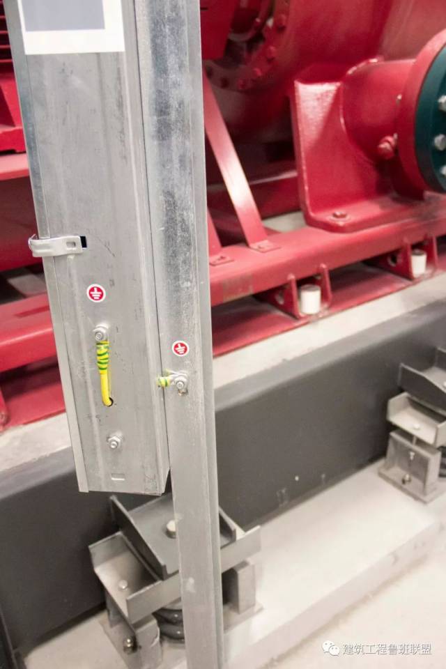电动机电源槽盒尾端接地规范、标识清晰。
