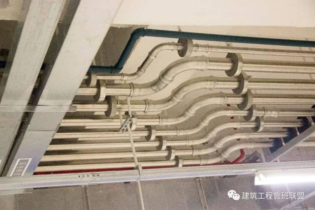 排水管道支架借用消防管支架既节约空间又节省成本。