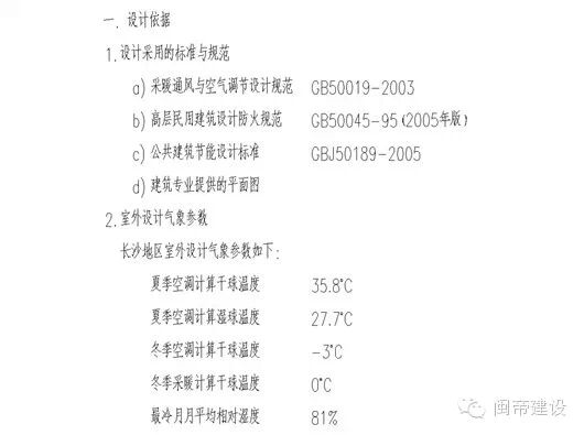 设计说明部分介绍设计概况和暖通空调室内外设计参数;冷源情况;冷媒参数;空调冷热负荷、冷热量指标,系统形式和控制方法,说明系统的使用操作要点等内容。