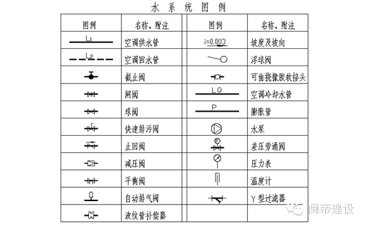 (3)图例:暖通空调工程的图例由两部分组成:风系统图例和水系统图例。
