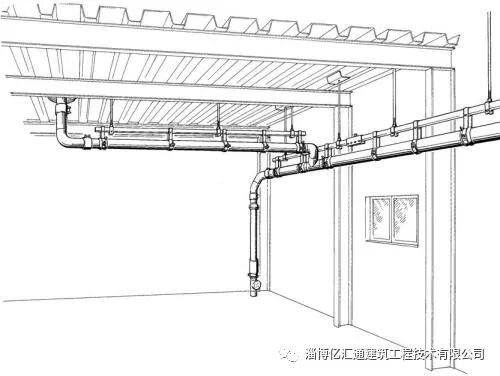3、悬吊管:悬吊在屋架、楼板和梁下或架空在柱上的雨水横管。