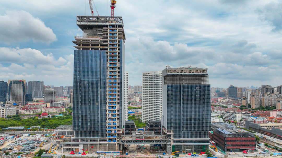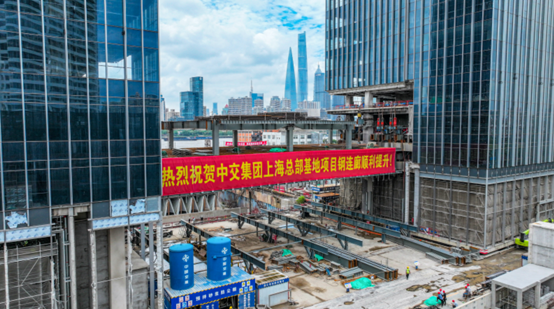 9月5日上午,中交滨江广场暨中交集团上海总部基地,链接项目A座B座两大主楼的钢结构连廊顺利整体吊装完毕。继8月中旬,项目A座主塔楼结构封顶之后,中交滨江广场再度迎来具有里程碑意义的高光时刻。