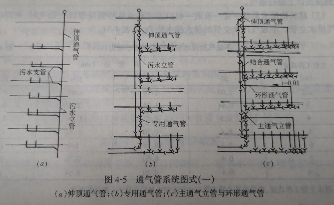 4)使用要求较高的建筑或高层公共建筑,在上述规定以外时,亦可根据需要设置环形通气管、主通气立管或副通气立管。