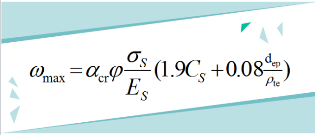 ωmax=αcr×ψ×σsq/Es×(1.9c+0.08×deq/ρte) =1.9×0.411×189.25/200000×(1.9×20+0.08×8.00/0.01)