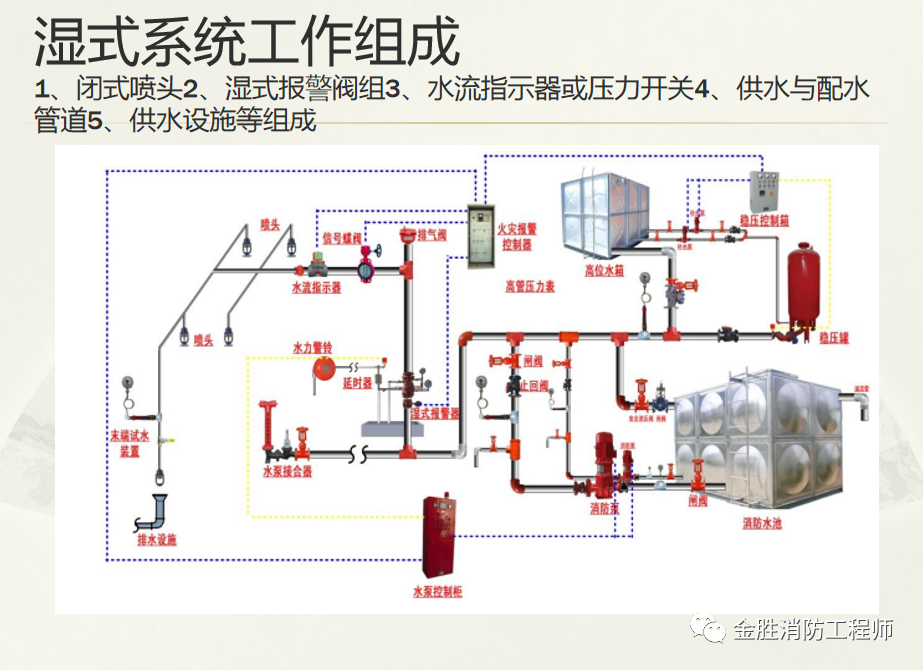 11.0.1 湿式系统、干式系统应由消防水泵出水干管上设置的压力开关、高位消防水箱出水管上的流量开关和报警阀组压力开关直接自动启动消防水泵。