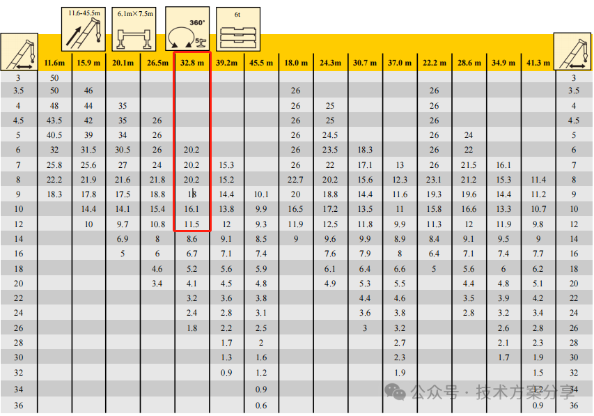 最大吊重:16t(回转半径:17.8m 处,四倍率)