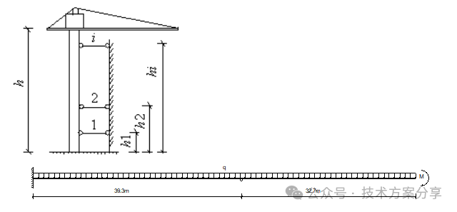 塔机按照说明书与建筑物附着时,最上面一道附着装置的负荷最大,因此以此道附着杆的负荷作为设计或校核附着杆截面的依据。