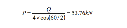 选用7527最重单体起重臂进行吊索的选型计算。按照1.2倍动载系数计算,自重Q=18.6t,由4根吊装绳进行吊装作业,吊装绳夹角取为60度。