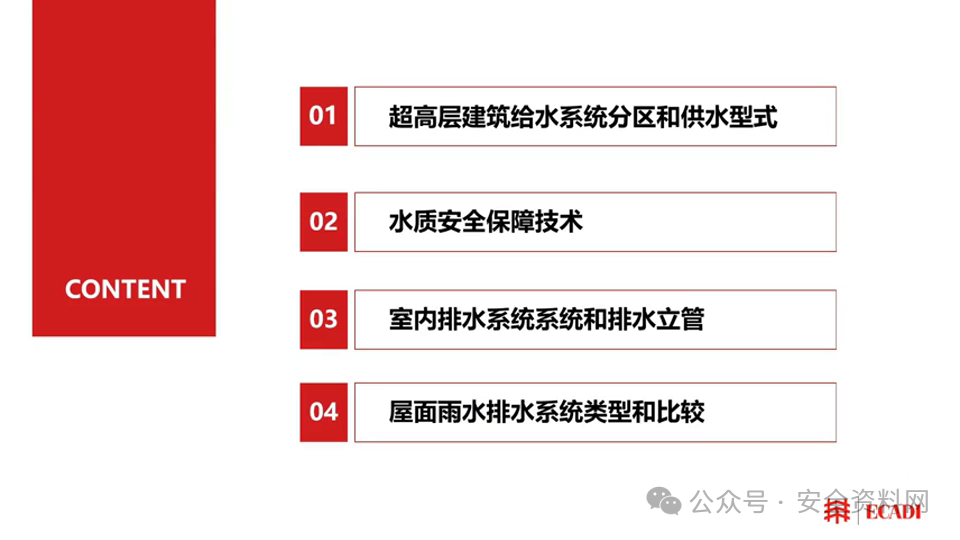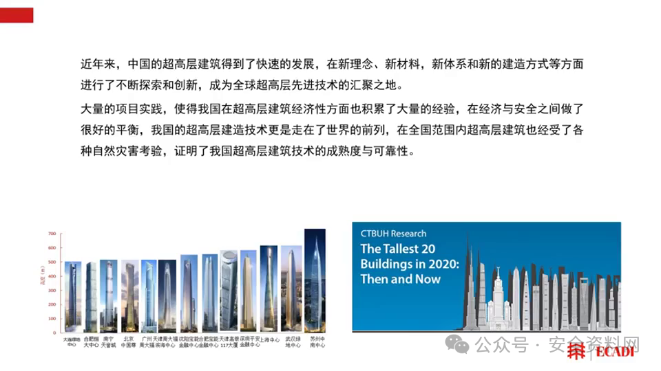 今天我来向大家介绍一下关于超高层建筑给水排水的设计要点的解析。我们下面就开始近年来中国的超高层建筑得到了个快速的发展,在新理念、新材料、新体系和新的建造方式等各个方面进行了不断的探索和创新,成为全球超高层先进技术的汇聚之地。大量的项目实践使得我国在超高层建筑经济性方面也积累了大量的经验,在经济与安全性做了很好的一个平衡。我国的超高层建造技术更是走在了世界的前列,在全国范围内,超高层建筑也经受住了各种自然灾害的考验,以及运行的经验,证明了我国超高层建筑技术的成熟度和可靠性。下面我将由通过下面几个四个方面来介绍关于超高层的建筑给水排水系统。