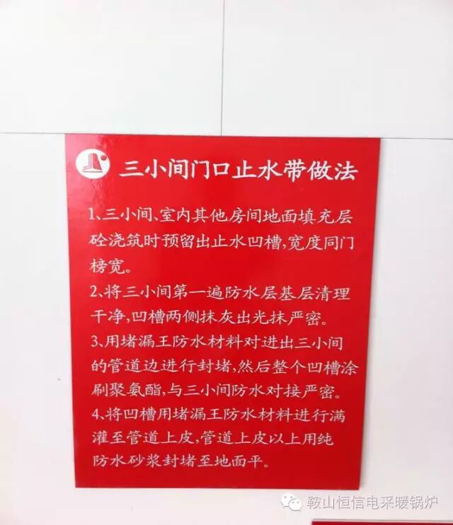 卫生间过门处应设置止水墙,在止水墙内侧应配合土建专业作防水,以防止卫生间积水渗入绝热层,并沿绝热层渗入其它区域。加热管穿止水墙处应设防水套管,防水套管两端应加密封。