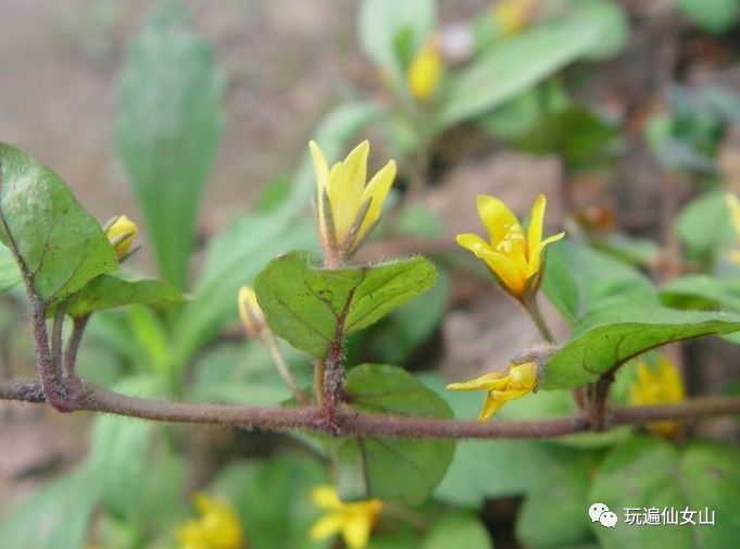 有一种成片成片象地菍一样长在路边的野草,茎叶紧贴着地面生长,黄色的小花朵娇嫩可爱,这就是“过路黄”。浆液沾到手上太多的话,手会发肿。过路黄有很多种名字:雪上一枝花、黄花过路黄、铜钱子带草、路边黄、过路蜈蚣、地蜈蚣……
