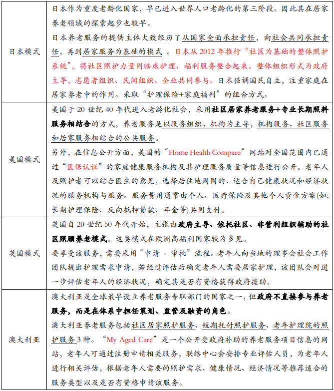 居家养老服务需求日益突出,仅就当前而言,我国居家养老市场远未打开。在这一需求广阔的蓝海市场,其他国家也有探索,他山之石、可以攻玉,通过对不同国家案例的研究,或对我国居家养老市场发展有所助力与启发。
