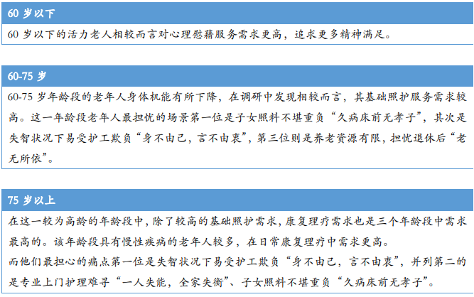 随着现代老年人对精神生活和生活品质的追求逐渐增长,心理慰藉服务的重要性也有所提高。此外,不同年龄段的老年人也有不同的需求偏好。