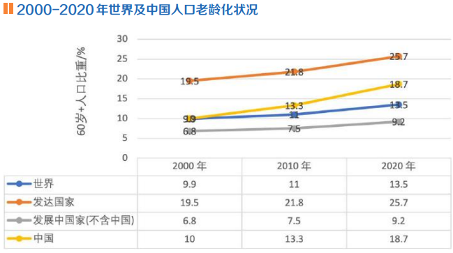 第七次全国人口普查数据显示,我国60岁及以上人口为 2.6402亿人,占总人口比重18.70%,与2010年相比上升5.44%。民政部预测,“十四五”期间,我国老年人口将突破3亿,从轻度迈入中度老龄化社会。