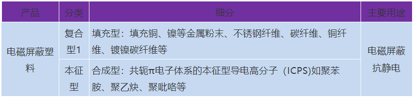 导电塑料具有良好的电磁屏蔽性能,且具有密度小、韧性好、成本低、易于加工、屏蔽性能可调节的优点,是金属屏蔽材料的潜在替代品。导电塑料主要用于集成电路、汽车电子、电气等领域EMI屏蔽外壳以及中、高压电缆中使用的半导电屏蔽料,能够在保持塑料固有特性的同时具有类似金属导电性的特性。