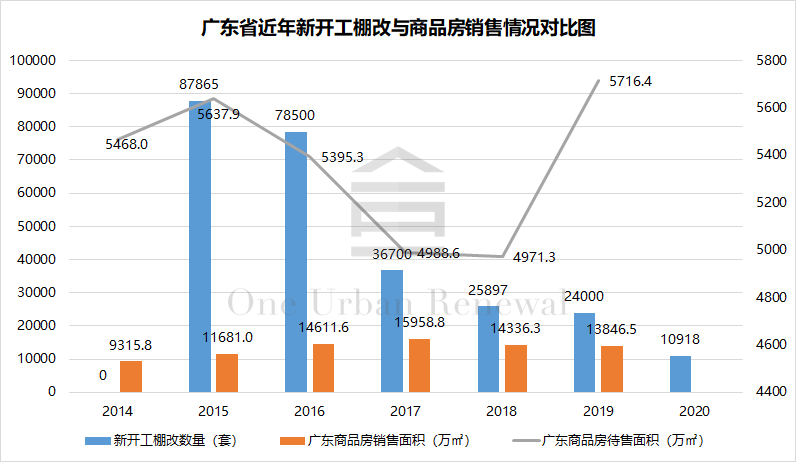 广东省政府于2014年2月7日发布《关于加快棚户区改造工作的实施意见》(粤府〔2014〕2号)之后,又先后制定并发布了《广东省棚户区改造规划(2014-2017)》(粤建保[2014]120号)和《广东省城市和国有工矿棚户区改造界定标准》(粤建保[2015]103号)等政策性文件。随着棚改政策陆续开展,2015年到2018年期间,广东省商品房待售面积持续降低,可以看出棚改为广东省商品房去库存、拉动地方经济发展等方面起到了有效助推作用。
