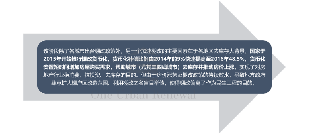 总体而言,棚改作为一项民生工程,从早期重点解决低收入家庭住房困难为目的,到如今发展成为各省市及地区优化城市形象、完善城市配套及改善人民生活水平等不可或缺的存量改造路径,具有一定的划时代意义。