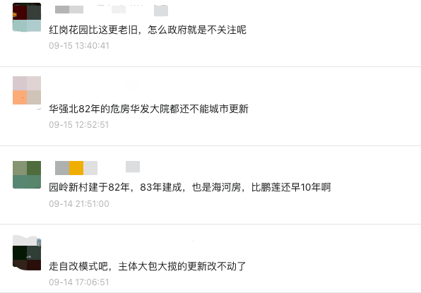 乐居先前跟进过的,有可能是深圳首例“自筹改造”的老旧小区红岗花园,寄希望在政府的牵头及协助下,小区居民招商引资,自筹自建。(近40年“废宅”,自己拆迁?实探罗湖首例“自筹”改造)