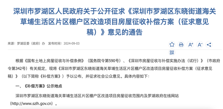 项目被列入《罗湖区2022年度棚户区改造实施计划第一批计划》,在它之后深圳再无棚改规划,因此海关草埔生活区片区棚户改造项目,被外界称为“深圳市最后一个棚改”。