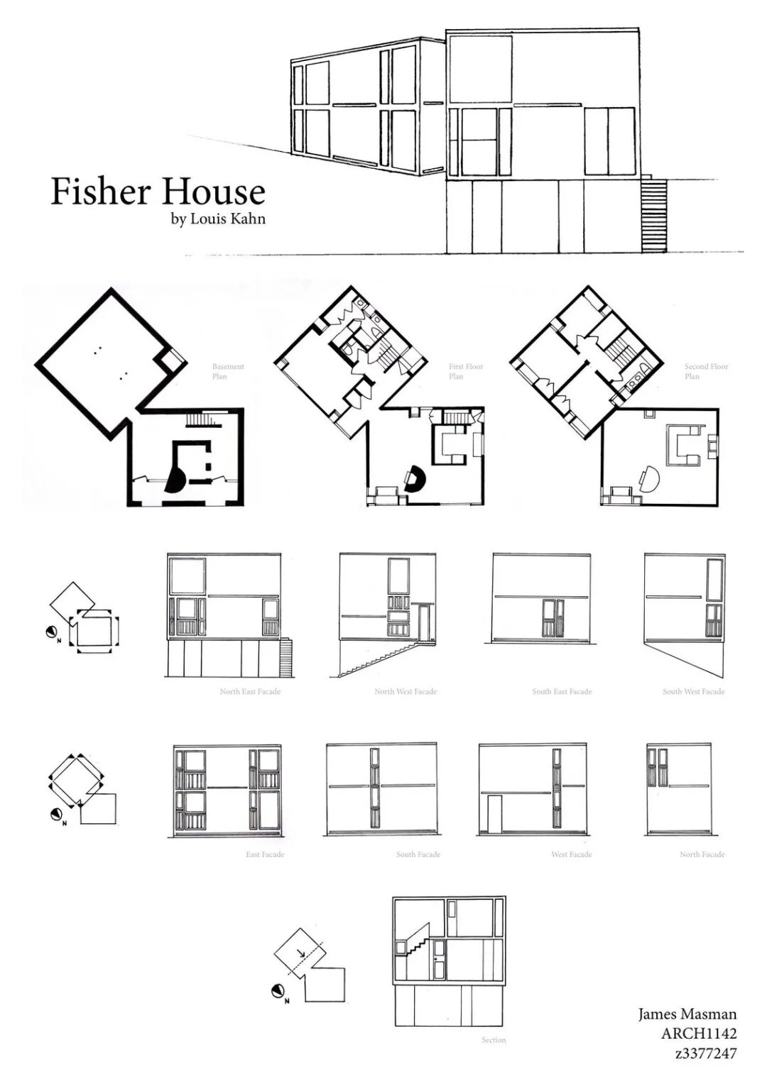 1967年,路易斯·康在宾夕法尼亚州的哈特伯勒为费舍尔博士和他的妻子建造了一座双立方体住宅,其独特的体块交接模式和石制地基充分说明了路易斯·康与同时代建筑师之间的不同之处,同时体现了他对于小型建筑的细节把控能力。