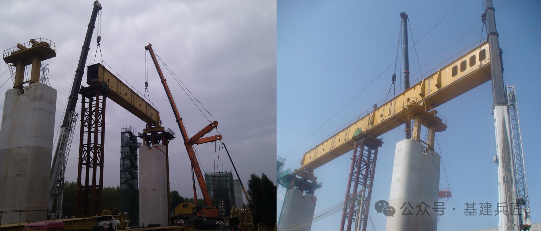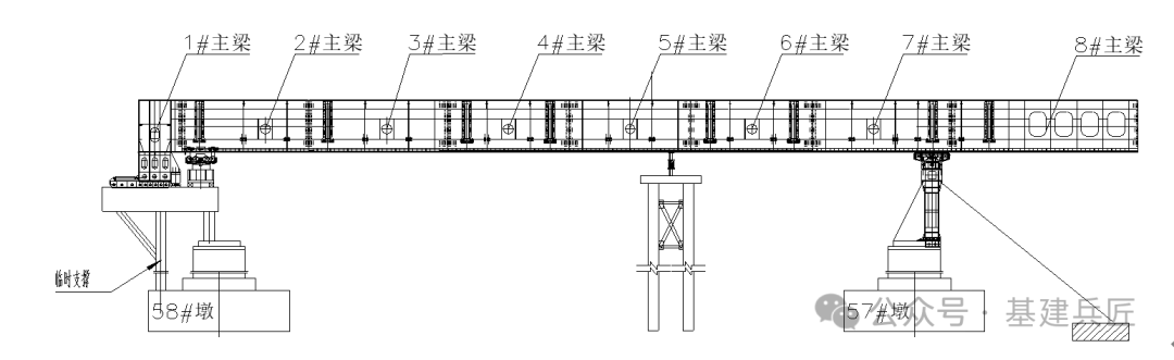 3、1#主梁与8#主梁拼接,安装辅助支腿;