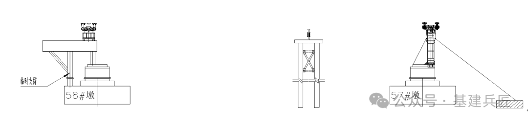 为移动模架拼装需要,在57#-58#墩之间及后支腿处搭设临时支架,移动模架支撑架采用钢管支架施工,钢管立柱采用φ600,钢管立柱之间采用[16a槽钢剪刀撑连接。如图4所示。