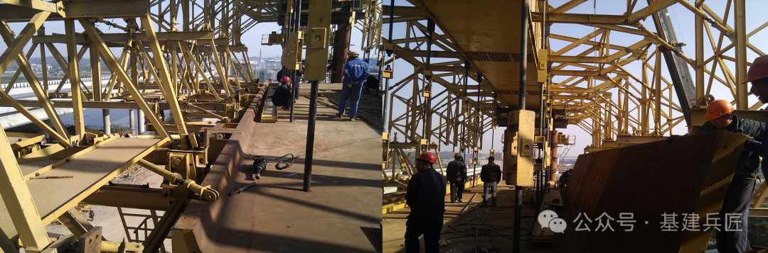 10.2.8、在移动模架吊杆安(拆)、底模横梁联(拆)承重销作业等高空临边处作业人员必须系扣安全带、穿好救生衣;模架横移、前移过程中除模架操作及指挥相关人员,禁止其他人员逗留站立模架上。