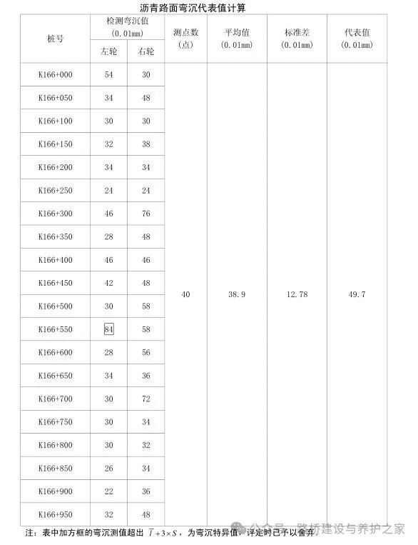 某三级公路,沥青混凝土路面,因养护需要进行路面弯沉检测,假定检测时路面温度为20℃,检测数据如下: