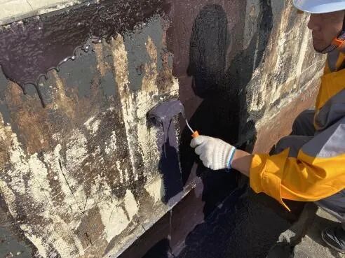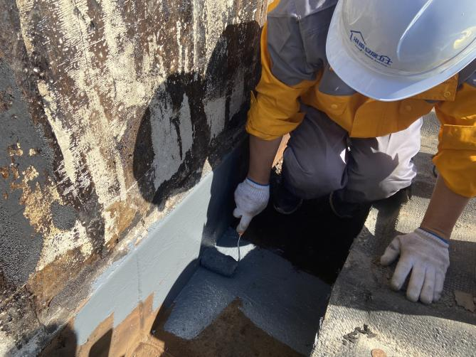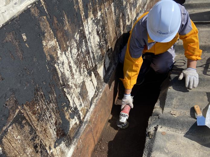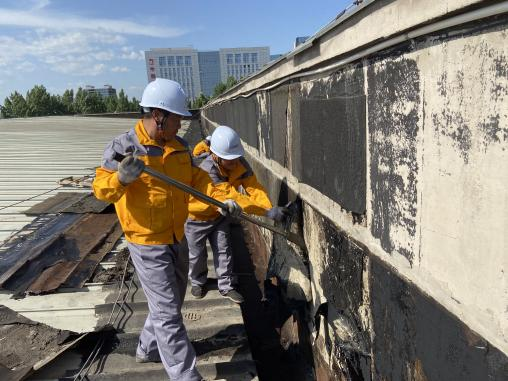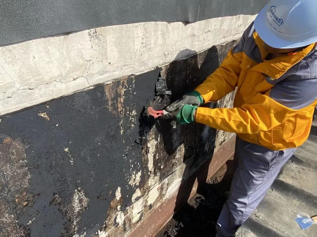 基层清理是此次维修的关键步骤,由于基层锈蚀严重,需要进行打磨除锈、涂刷防腐涂料,这样才能为后续新做防水层提供一个安全可靠的附着基层。