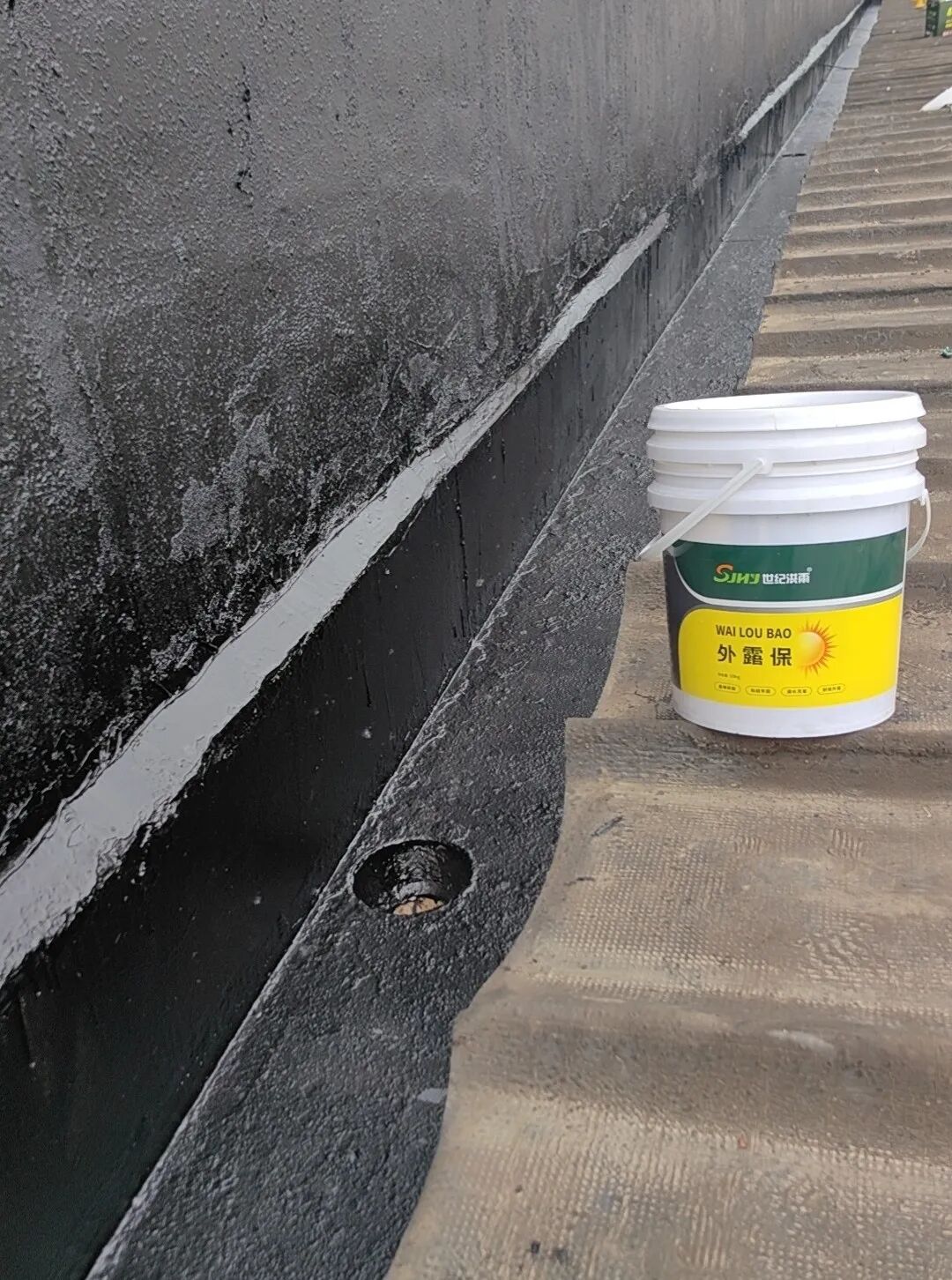 此次修缮所使用的防水材料是世纪洪雨防水修缮专用涂料—外露保,在处理好的基层上,一布三涂工艺施工,精细化把控每遍涂料涂刷质量,将排水檐沟内部与女儿墙墙体内侧均匀涂刷,形成一道致密的整体外包防水涂膜层。