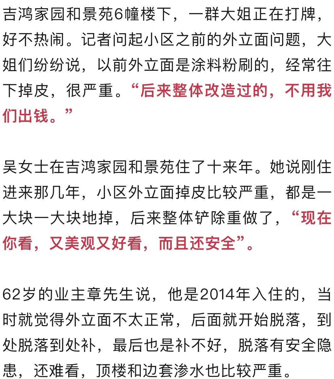 杭州东升建设工程有限公司是吉鸿家园和景苑外立面重做的施工单位。施工项目负责人吴彬彬告诉记者,吉鸿家园小区原来使用的外立面材料是保温砂浆,这种材料容易脱落。