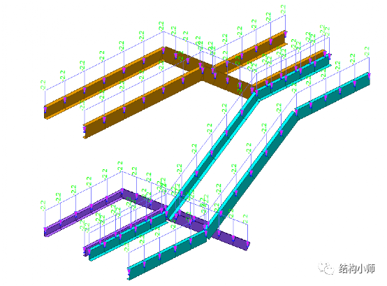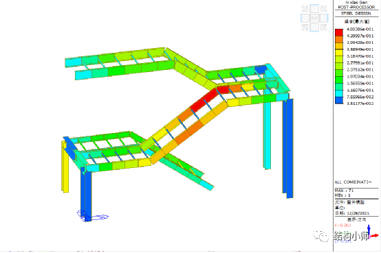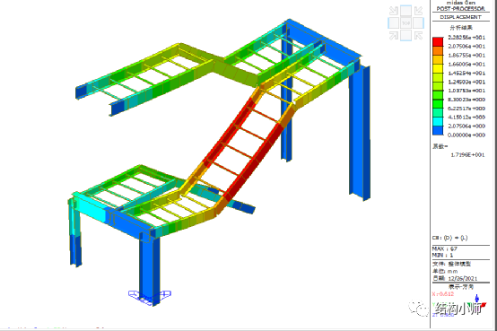 标准组合下楼梯整体结构的最大挠度最大为22.8mm满足刚度要求,可以调整TL尺寸使得刚度在1/250L要求范围内,做到经济。(经济性调整不再演示)
