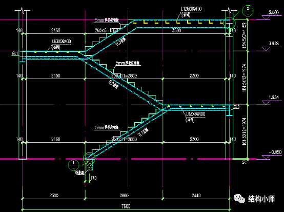 此例为某带夹层工业厂房的钢结构楼梯(室内楼梯)。