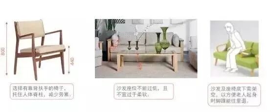 13、沙发及座椅底下需架空,以方便老人起身时脚踝能往里退。