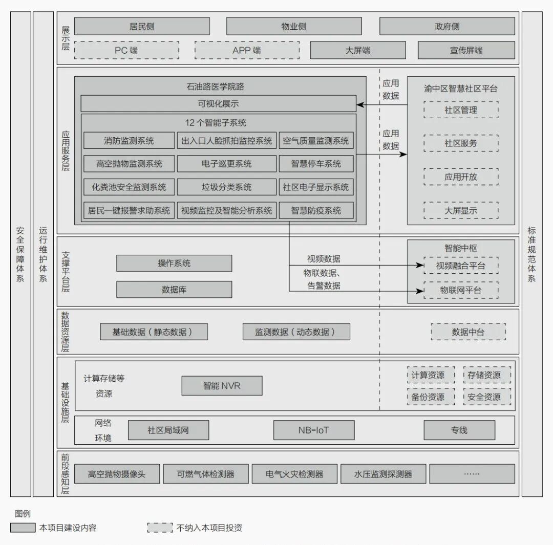 该项目以渝中区石油路街道医学院路老旧社区智能化改造建设为基础,切实解决部分老旧社区存在的安防盲区、人防管理缺位、高空抛物、社区商铺占道经营、垃圾分类及智能化设施建设滞后等突出问题,为居民提供安全、高效、便捷的智慧化服务。