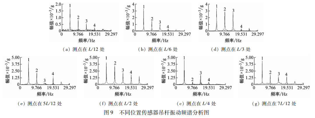 (2)在环境激振作用下大跨度系杆拱桥柔性吊杆的振动模态与简支结构相似。建议在应用频率法测试吊杆索力时,测试点位宜放在吊杆L/6~L/4处,尽可能远离吊杆两端并避免放置在阵型的模态节点处,以减少端部低频信号对基频的影响及出现“漏频”现象。