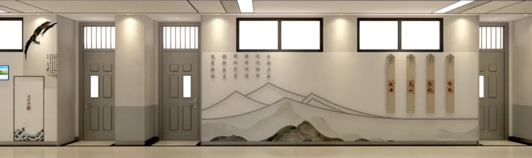 同时,设计以“塑雅形,成大器”为设计理念,通过文化建设去鼓励师生追求卓越、精益求精的精神。此外,文化墙还注重立德立言立行的教育引导,让师生在欣赏陶艺的同时,感受道德品质和人生价值的熏陶。整体上,设计简约而富有艺术感,既提升了空间品质,也增强了视觉效果,为师生创造了一个富有艺术氛围和教育意义的学习环境。