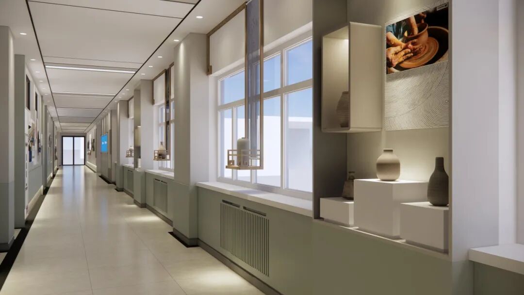 这次美术长廊的设计主要通过展示陶艺相关的海报、照片和作品,直观地传递陶艺文化的魅力和价值,体现了对陶艺的推崇和重视,密切的贴合了学校的“陶艺"的教育理念。